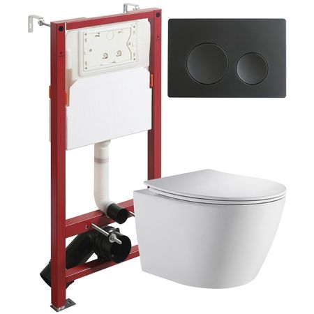 Комплект унитаза с инсталляцией Orange CI07-150W+APB144 с сиденьем Микролифт и Черной матовой клавишей смыва.