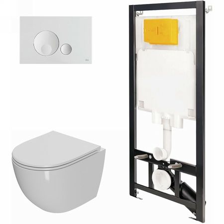 Комплект унитаза с инсталляцией Point Афина 886914GBO1+PN41041 с сиденьем Микролифт и Белой клавишей смыва.