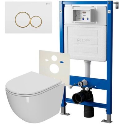 Комплект унитаза с инсталляцией Point Афина PN48052WG с сиденьем Микролифт и Белой Золото клавишей смыва.
