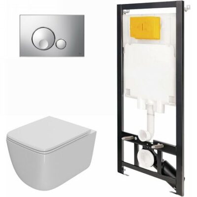 Комплект унитаза с инсталляцией Point Меркурий 886914GBOO+PN41831 с сиденьем Микролифт и клавишей смыва Хром глянцевый.