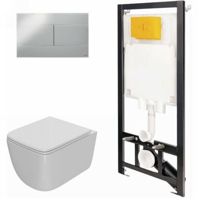 Комплект унитаза с инсталляцией Point Меркурий 886914SIOO+PN41831 с сиденьем Микролифт и клавишей смыва Хром глянцевый.