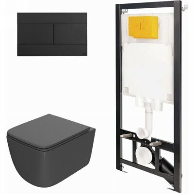 Комплект унитаза с инсталляцией Point Меркурий 886914SLO3+PN41831GM с сиденьем Микролифт и Черной матовой клавишей смыва.