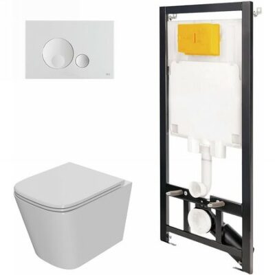 Комплект унитаза с инсталляцией Point Ника 886914GBO1+PN41081 с сиденьем Микролифт и Белой клавишей смыва