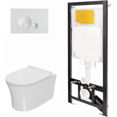 Комплект унитаза с инсталляцией Point Вега 886914GBO1+PN41711 с сиденьем Микролифт и Белой клавишей смыва.