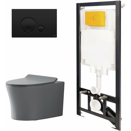 Комплект унитаза с инсталляцией Point Вега 886914GBO3+PN41711GM с сиденьем Микролифт и Черной матовой клавишей смыва.