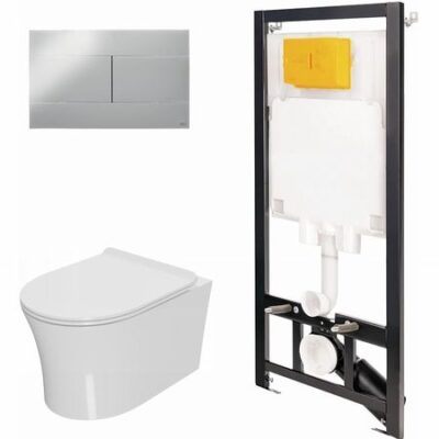 Комплект унитаза с инсталляцией Point Вега 886914SIOO+PN41711 с сиденьем Микролифт и клавишей смыва Хром глянцевый.