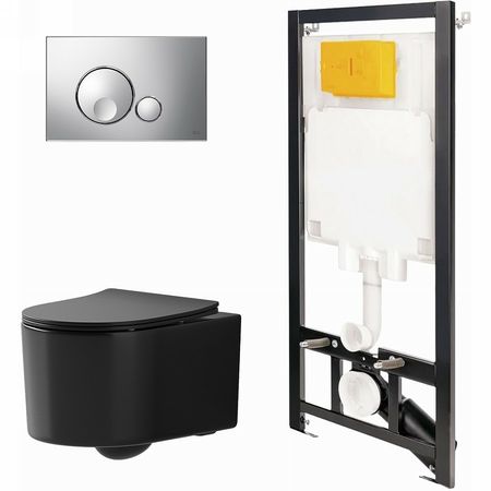 Комплект унитаза с инсталляцией Point Веста 886914GBOO+PN41701BM с сиденьем Микролифт и клавишей смыва Хром глянцевый.