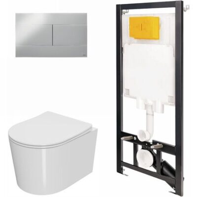 Комплект унитаза с инсталляцией Point Веста 886914SIOO+PN41701 с сиденьем Микролифт и клавишей смыва Хром глянцевый.