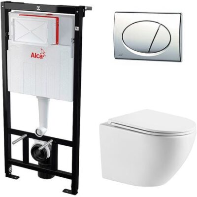 Комплект унитаза WellWant Aura WWU01121WK с инсталляцией Alcaplast Sadromodul AM101/1120-3:1 RU M71-0001 с плоским сиденьем Микролифт и клавишей смыва Хром.