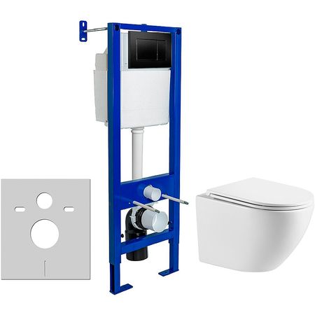 Комплект унитаза WellWant Aura WWU01121WK с инсталляцией Berges Atom 410 040332 с плоским сиденьем Микролифт и Черной матовой клавишей смыва.