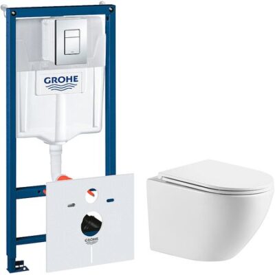 Комплект унитаза WellWant Aura WWU01121WK с инсталляцией Grohe Rapid SL 38775001 с плоским сиденьем Микролифт и клавишей смыва Хром.