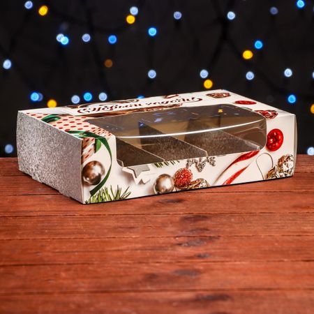 Кондитерская упаковка под 5 эклеров «Новогодние подарки», 25.2×15×6.6 см. Кондитерская упаковка под 5 эклеров с окном — это оригинальный вариант оформления эклеров в качестве подарка. <strong> Преимущества:</strong> <ul> <li> плотный картон;</li> <li> сохраняет вкусовые качества кондитерского изделия;</li> <li> удобно использовать при транспортировке.</li> </ul>