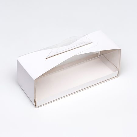 Кондитерская упаковка под пирожное, 26×10×10 см. Кондитерская упаковка под пирожное — это отличный вариант оригинально преподнести сладкий подарок знакомым, друзьям, близким. Благодаря прозрачному окошку получатель сразу может оценить аккуратный и эстетический вид кондитерского изделия. <strong> Преимущества:</strong> <ul> <li> термостойкость;</li> <li> устойчивость к влаге и жиру;</li> <li> защищает товар при транспортировке на дальние расстояния.</li> </ul>