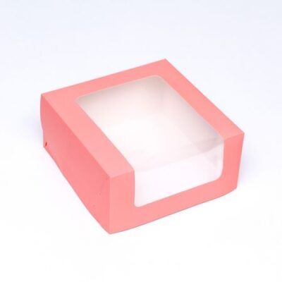 Кондитерская упаковка с окном, розовая, 21×21×10 см. Кондитерская упаковка с окном — это удобное и стильное решение для упаковки и демонстрации свежих кондитерских изделий. Прозрачное окно позволяет видеть внутренний содержимый, делая десерты аппетитными и придавая им привлекательный внешний вид. Эта упаковка идеально подходит для подарков, продажи или для хранения домашних сладостей, создавая эффектное визуальное представление вашего творчества.