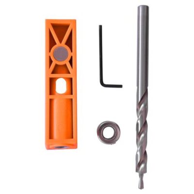 Назначение: для скрытых соединений, сверление под углом Состав набора: кондуктор 1шт, сверло со ступенчатым наконечником 9,5х150мм 1шт; ограничитель глубины для сверл 9,5мм 1шт; ключ шестигранный 2,8мм 1 шт. Мин. толщина соединяемых деталей: 10 мм Макс. толщина соединяемых деталей: 40 мм