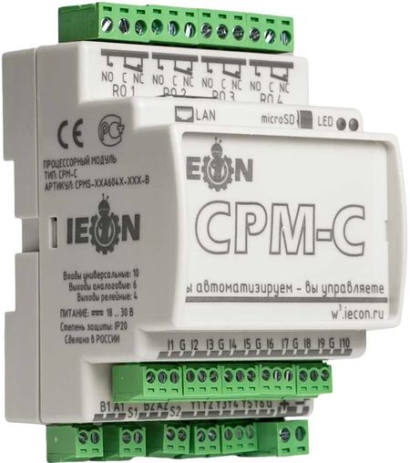 Контроллер IECON (АЕКОН) CPMS-XXA604X-BXX-B поставляется без терминала пользователя и устанавливается на DIN-рейку. Устройство применяется для управления широким набором оборудования — приточно-вытяжные установки, фанкойлы и прочие. Оператор может использовать встроенное ПО или использовать интерпретатор IERELAY.