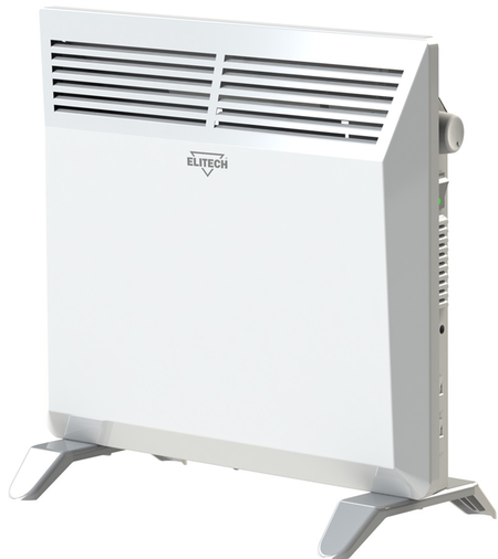 Elitech (Элитеч) ЭКН 1000 это эргономичный и компактный конвектор с электрическим однофазным подключением. Модель поставляется в комплекте с опорными ножками и кронштейнами, так что устанавливать ее можно и на пол, и на стену. Также обогреватель обладает системой защиты от перегрева и датчиком опрокидывания.