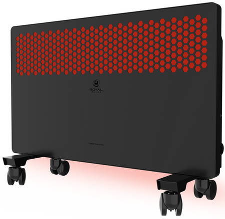 Электрический конвектор Royal Clima (Роял Клима) REC-LUB1000M выполнен в изящном металлическом корпусе черного цвета (при включении активируется красная подсветка). Прибор можно установить на стену с помощью комплектных креплений или же поставить на пол (опоры и колесики также поставляются вместе с конвектором).