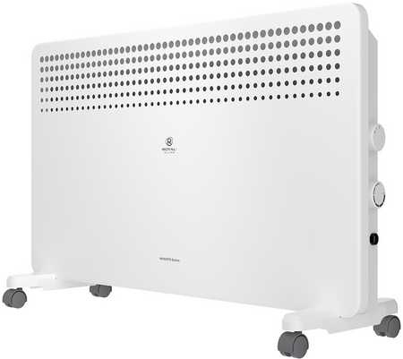 Электрический конвектор Royal Clima (Роял Клима) REC-MIE2000M заключен в прочный металлический корпус и окрашен в белый цвет. Мощность модели можно регулировать в двух положениях, используя механический термостат. Но полу конвектор может стоять как на опорах, так и на колесах. Для настенного монтажа в комплекте имеются специальные крепления.