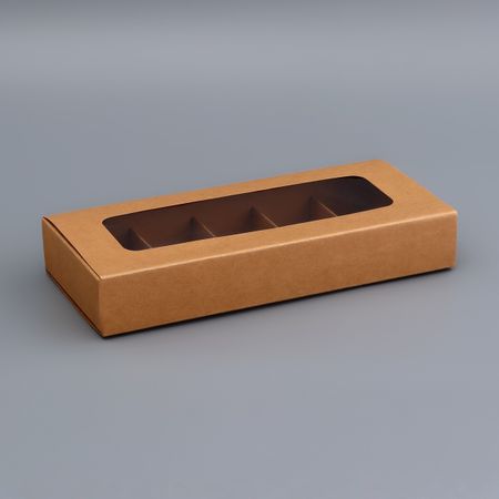 Коробка для 10 конфет, крафт, 9.8×22×3.5 см. Кондитерская коробка — это оригинальный вариант оформления конфет и трюфеля в качестве подарка. Преимущества: плотный картон; сохраняет вкусовые качества кондитерского изделия; удобно использовать при транспортировке; ложемент можно достать и использовать как простую подарочную коробку.