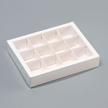 Коробка для 12 конфет, 19×15×3.5 см. <strong> Коробка для 12 конфет размером 19 х 15 х 3,5 см с прозрачной крышкой</strong> — идеальное решение для стильной и эффектной упаковки. <ul> <li> Прозрачная крышка позволяет выгодно продемонстрировать изысканные сладости, привлекая внимание к их оформлению и разнообразию.</li> <li> Внутри коробки предусмотрены 12 ячеек для аккуратного размещения конфет, что обеспечивает их сохранность и презентабельный вид.</li> <li> Компактные размеры делают упаковку удобной для хранения и транспортировки.</li> <li> Эта коробка идеально подойдет для подарочных наборов, праздничных сувениров или личных презентов, подчеркивая внимание к деталям и эстетике.</li> </ul>