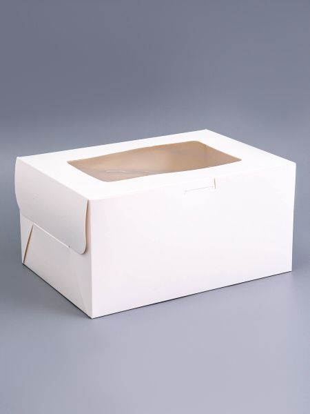 Коробка для 2 капкейка и торт, белая, 25.4×18×12.7 см