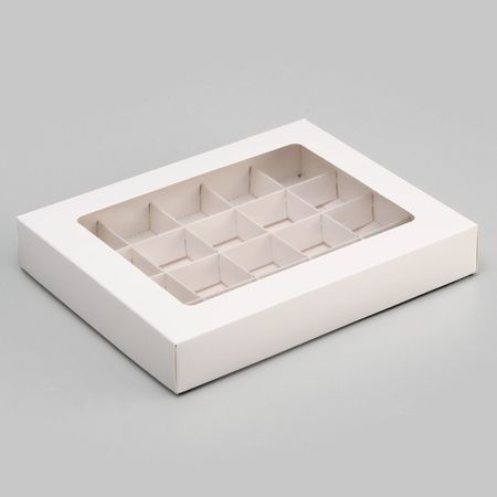 Коробка для 20 конфет, белая, 17.7×22×3.5 см. Кондитерская коробка — это оригинальный вариант оформления конфет и трюфеля в качестве подарка. Преимущества: плотный картон; сохраняет вкусовые качества кондитерского изделия; удобно использовать при транспортировке; ложемент можно достать и использовать как простую подарочную коробку.