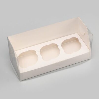 Коробка для 3 капкейка 24×10×10 см, белый. Кондитерская упаковка для 3 капкейков с прозрачной крышкой и удобными ручками — идеальное решение для упаковки и транспортировки свежих капкейков. Ее элегантный дизайн позволяет видеть внутренний содержимый, создавая аппетитный вид и придавая капкейкам особую презентацию. Прочные ручки облегчают переноску, что делает эту упаковку удобной и практичной для подарка и продажи домашних сладостей. Подарите свои вкусные капкейки в стильной и функциональной упаковке.