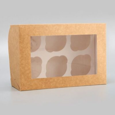 Коробка для 6 капкейков с окном, крафт, 25×17×10 см. Упаковка под 6 капкейков с окном — это оригинальный вариант оформления капкейков в качестве подарка. Преимущества: <ul> <li> плотный картон;</li> <li> сохраняет вкусовые качества кондитерского изделия;</li> <li> удобно использовать при транспортировке.</li> </ul>