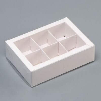 Коробка для 6 конфет, 13.7×9.85×3.85 см. <strong> Коробка для 6 конфет размером 13,7 х 9,85 х 3,85 см с прозрачной крышкой</strong> — идеальное решение для стильной и эффектной упаковки. <ul> <li> Прозрачная крышка позволяет выгодно продемонстрировать изысканные сладости, привлекая внимание к их оформлению и разнообразию.</li> <li> Внутри коробки предусмотрены 6 ячеек для аккуратного размещения конфет, что обеспечивает их сохранность и презентабельный вид.</li> <li> Компактные размеры делают упаковку удобной для хранения и транспортировки.</li> <li> Эта коробка идеально подойдет для подарочных наборов, праздничных сувениров или личных презентов, подчеркивая внимание к деталям и эстетике.</li> </ul>