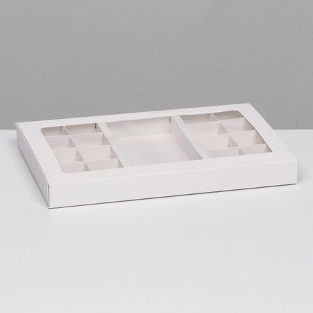 Коробка для 8 + 8 конфет + шоколад, с окном, белая 30×19.5×3 см