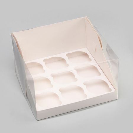 Коробка для 9 капкейков белая 23.5×23×14 см. Кондитерская складная коробка для капкейков — это удивительно удобное и функциональное решение для упаковки и транспортировки ваших вкусных капкейков. Ее специальный дизайн с разделителями обеспечивает безопасное размещение капкейков, предотвращая размазывание глазури и декора. Эта коробка сделает процесс упаковки и подарка капкейков легким и профессиональным, сохраняя их привлекательный вид и вкус. Делитесь радостью сладостей с кондитерской коробкой для капкейков.