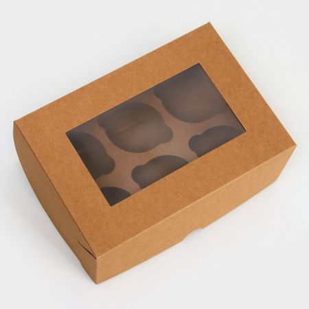 Коробка на 6 капкейков крафт с окном, 18.6×13.1×8 см набор 5 шт.. <strong> Коробочка для капкейков</strong> — это отличный вариант оригинально преподнести сладкий подарок знакомым, друзьям, близким. Благодаря прозрачному окошку получатель сразу может оценить аккуратный и эстетический вид кондитерского изделия. <strong> Преимущества:</strong> <ul> <li> термостойкость;</li> <li> устойчивость к влаге и жиру;</li> <li> защищает товар при транспортировке на дальние расстояния.</li> </ul>
