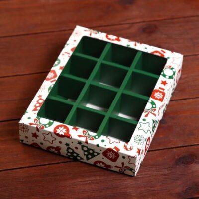 Коробка под 12 конфет «Новогодний паттерн», 19×15×3.6 см. Коробка для конфет на 12 штук — идеальное решение для упаковки и подарка ваших любимых сладостей. Удобный формат позволяет разместить 12 конфет, создавая сладкий подарок или десертный набор. Эта коробка подчеркивает вкус и внешний вид ваших конфет, делая их готовыми к радостному моменту угощения.
