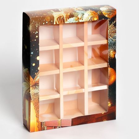 Коробка под 12 конфет «Время чудес», 19×15×3.6 см. <strong> Коробка для конфет "Новогодняя" размером 19х15х3,6 см</strong> — это идеальный выбор для упаковки сладостей к празднику. Она выполнена в ярких новогодних цветах, что создает атмосферу праздника и волшебства. Коробка имеет прямоугольную форму и состоит из двух частей: верхней крышки и нижней части. Верхняя крышка украшена красивым рисунком, который подчеркивает новогоднюю тематику. Нижняя часть коробки предназначена для размещения конфет. Размеры коробки позволяют упаковать 12 штук конфет, что делает ее удобной для использования в качестве подарка или для домашнего использования. Коробка изготовлена из качественного картона, который обеспечивает надежную защиту содержимого от внешних воздействий. Эта коробка для конфет станет прекрасным дополнением к новогоднему столу или подарком для близких и друзей. Она создаст праздничное настроение и подарит радость всем, кто получит такой подарок.