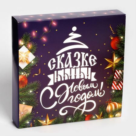 Коробка под 16 конфет «Сказке быть!», 17.7×17.7×3.8 см. <strong> Коробка под 16 конфет "Новогодняя"</strong> размером 17,7х17,7х3,8 см — это прекрасный выбор для упаковки сладостей к празднику. Она выполнена в ярких новогодних цветах, что создает атмосферу праздника и волшебства. Коробка имеет квадратную форму и состоит из двух частей: верхней крышки и нижней части. Верхняя крышка украшена красивым рисунком, который подчеркивает новогоднюю тематику. Нижняя часть коробки предназначена для размещения конфет. Размеры коробки позволяют упаковать 16 штук конфет, что делает ее удобной для использования в качестве подарка или для домашнего использования. Коробка изготовлена из качественного картона, который обеспечивает надежную защиту содержимого от внешних воздействий. Эта коробка для конфет станет прекрасным дополнением к новогоднему столу или подарком для близких и друзей. Она создаст праздничное настроение и подарит радость всем, кто получит такой подарок.