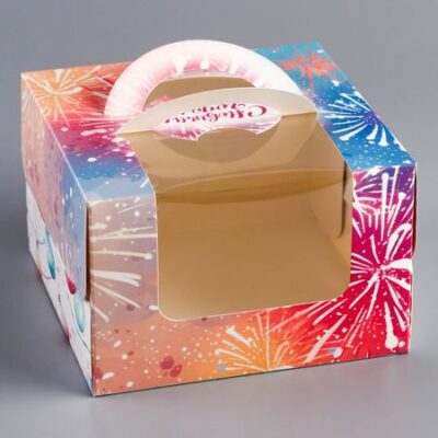 Коробка под бенто — торт с окном «Загадай желание», 15.5×15.5×10 см. <strong> Новогодняя коробка для бенто-торта с окном</strong> — это стильная и праздничная упаковка, разработанная специально для небольших тортов, которые станут идеальным подарком или угощением в зимний сезон. Коробка выполнена из плотного картона, украшенного новогодним дизайном, который создает атмосферу волшебства и праздника. Главной особенностью коробки является прозрачное окно, которое позволяет эффектно демонстрировать бенто-торт, не открывая упаковку, сохраняя его свежесть и аккуратный вид. Компактный размер коробки делает ее идеальной для порционных тортов, а праздничное оформление — отличным выбором для подарка, новогодних мероприятий или продаж в кафе и кондитерских.