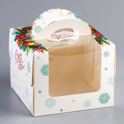Коробка под бенто — торт с окном «Загадай желание», 16×16×12.5 см. <strong> Новогодняя коробка для бенто-торта с окном</strong> — это стильная и праздничная упаковка, разработанная специально для небольших тортов, которые станут идеальным подарком или угощением в зимний сезон. Коробка выполнена из плотного картона, украшенного новогодним дизайном, который создает атмосферу волшебства и праздника. Главной особенностью коробки является прозрачное окно, которое позволяет эффектно демонстрировать бенто-торт, не открывая упаковку, сохраняя его свежесть и аккуратный вид. Внутри коробка снабжена вставкой, обеспечивающей надежную фиксацию торта, чтобы он оставался на месте при транспортировке. Компактный размер коробки делает ее идеальной для порционных тортов, а праздничное оформление — отличным выбором для подарка, новогодних мероприятий или продаж в кафе и кондитерских.