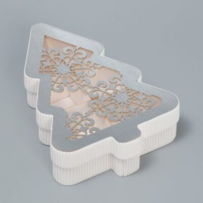 Коробка подарочная «Ёлка», 23 х 13 х 5 см. Дизайн на коробке выполняется с использованием лазерной резки, поэтому на поверхности могут оставаться характерные следы