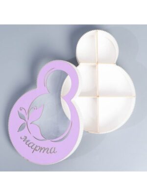 Коробка подарочная, кондитерская упаковка «8 марта» фиолетовая, 22 х 16 х 5 см. Дизайн на коробке выполняется с использованием лазерной резки, поэтому на поверхности могут оставаться характерные следы