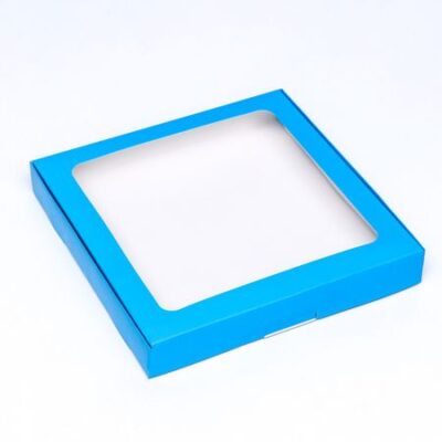 Коробка самосборная с окном синяя, 21×21×3 см. Коробка самосборная с окном — практичное и стильное решение для упаковки и демонстрации различных товаров. Ее легкая сборка позволяет быстро и удобно создавать привлекательные подарочные наборы или упаковывать товары, а прозрачное окно добавляет возможность визуально оценить их содержимое. Эта коробка сочетает в себе функциональность и визуальное привлечение, делая товары более привлекательными для покупателей или получателей.