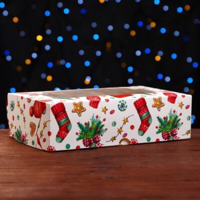 Коробка складная с окном «Новогодний паттерн», 25×15×7 см. Коробка складная новогодняя — идеальное решение для упаковки и подарка новогодних сюрпризов. Ее праздничный дизайн с символами Нового года создает особую атмосферу и делает эту коробку идеальным выбором для упаковки подарков в преддверии праздника. Подарите радость и праздничное настроение в компактной и удобной коробке.