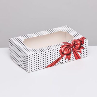 Коробка складная с окном под зефир «Горошек с бантиком», 25×15×7 см. Коробка складная с окном под зефир — это оригинальный вариант оформления зефира в качестве подарка. Преимущества: плотный картон; сохраняет вкусовые качества кондитерского изделия; удобно использовать при транспортировке.