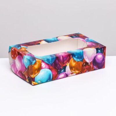 Коробка складная с окном под зефир «Шары», 25×15×7 см. Коробка складная с окном под зефир — это оригинальный вариант оформления зефира в качестве подарка. Преимущества: плотный картон; сохраняет вкусовые качества кондитерского изделия; удобно использовать при транспортировке.