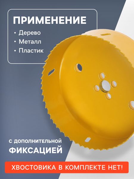Коронка биметаллическая ТУНДРА, 140 мм, M16 с дополнительной фиксацией. <em> Инструмент для больших задач!</em> <strong> Биметаллическая коронка 140 мм, М16</strong> – это надежный помощник для создания крупных отверстий в дереве, металле и пластике. Ее прочность и универсальность делают ее незаменимой для профессионалов и домашних мастеров. <ul> <li> <strong> Эффективное сверление:</strong> Биметаллическая конструкция обеспечивает долговечность и стойкость к износу. Диаметр 140 мм идеально подходит для создания больших и точных отверстий в различных материалах.</li> <li> <strong> Дополнительная фиксация:</strong> Надежная система крепления гарантирует стабильность при работе с дрелью или перфоратором. Это исключает соскальзывание и повышает безопасность.</li> <li> <strong> Универсальность применения:</strong> Подходит для работы с деревом, металлом и пластиком. Инструмент легко справляется с различными материалами, сохраняя аккуратность краев и минимизируя риск сколов.</li> <li> <strong> Совместимость:</strong> Стандартный хвостовик М16 совместим с большинством дрелей и перфораторов. Простая установка экономит время и силы.</li> </ul> <strong> Почему выбирают этот инструмент?</strong> Биметаллическая коронка станет незаменимым помощником для монтажников, плотников и домашних мастеров. Она помогает добиться профессионального результата в работе с любыми материалами. Доверьте свою работу инструменту, который всегда работает на вас!