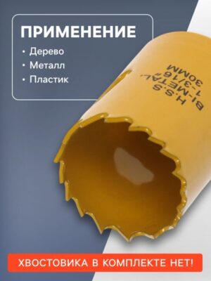 Коронка биметаллическая ТУНДРА, 30 мм, M14. <em> Инструмент для точной и эффективной работы!</em> <strong> Биметаллическая коронка 30 мм, М16</strong> – это надежный помощник для создания аккуратных отверстий в дереве, металле и пластике. Ее прочность и универсальность делают ее незаменимой для профессионалов и домашних мастеров. <ul> <li> <strong> Чистый рез:</strong> Биметаллическая конструкция гарантирует долговечность и стойкость к износу. Диаметр 30 мм идеально подходит для сверления точных отверстий без сколов и деформаций.</li> <li> <strong> Универсальность применения:</strong> Инструмент успешно работает с различными материалами, включая дерево, металл и пластик. Четкие края отверстий минимизируют необходимость дополнительной обработки.</li> <li> <strong> Простая установка:</strong> Стандартный хвостовик М16 совместим с большинством дрелей и перфораторов. Надежная фиксация обеспечивает стабильность во время работы.</li> <li> <strong> Долговечность:</strong> Изготовлена из высококачественных материалов, устойчивых к механическим нагрузкам. Коронка сохраняет свои свойства даже при длительном использовании.</li> </ul> <strong> Почему выбирают этот инструмент?</strong> Биметаллическая коронка станет незаменимым помощником для монтажников, плотников и домашних мастеров. Она помогает добиться профессионального результата в работе с любыми материалами. Доверьте свою работу инструменту, который всегда работает на вас!