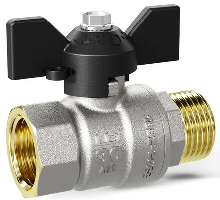 LD (эЛДи) Pride 47.15.В-Н.Б представляет собой запорный шаровой кран, изготовленный из латуни. Он устанавливается на трубопроводах систем водоснабжения, отопления, сжатого воздуха с целью перекрытия потока рабочей жидкости. Он оснащен удобной ручкой-бабочкой черного цвета. Отличается прочностью и долговечностью.