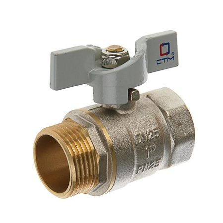 Шаровой кран для воды 1″ с внутренней/наружной резьбой, ручкой-бабочкой применяется в качестве запорной арматуры на трубопроводах систем питьевого, хозяйственно-бытового и промышленного назначения, холодного, горячего водоснабжения и отопления, сжатого воздуха и жидких углеводородов, а также в трубопроводах, транспортирующих среды, не агрессивные к материалам крана.Особенности конструкции, технологии изготовления, применяемые материалы обеспечивают долголетнюю работу шарового крана при эксплуатации в условиях отечественных инженерных систем.Шаровой кран является полнопроходным и ремонтопригодным. Корпус и шток крана изготовлены из высококачественной горячепрессованной латуни с никелированным покрытием. Шаровой затвор выполнен из высококачественной горячепрессованной латуни, отполирован и покрыт хромом. Герметичность затвора крана соответствует наиболее высокому классу — А.Наличие тефлоновых седельных колец и сальниковой прокладки позволяет использовать шаровой кран в отопительных системах с рабочей температурой до 150 °C. Оптимальная длина резьбы обеспечивает надёжное соединение. Техническое обслуживание крана в течение всего срока эксплуатации не требуется (средний срок службы составляет 20 лет, средний ресурс наработки на отказ — 35 000 циклов). Нормативное давление: 25 бар.