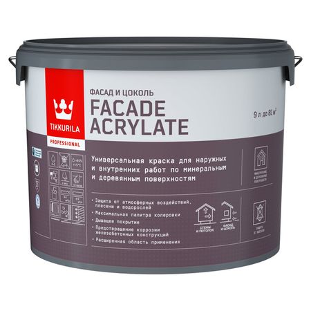 краска акрилатная фасадная TIKKURILA Facade Acrylate база A 9л белая, арт.700012342