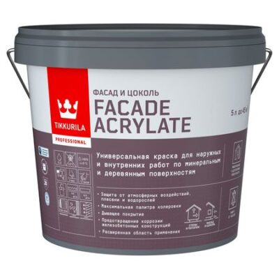 краска акрилатная фасадная TIKKURILA Facade Acrylate база С 5л бесцветная, арт.700012345